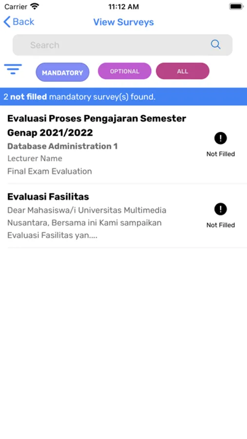 6. Fill your surveys, including facility and lecturer evaluations