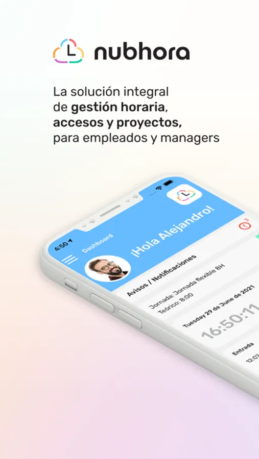 Nubhora es un sistema experto de gestión horaria que ofrece a empleados y managers la posibilidad de gestionar todo lo relacionado con su jornada laboral a través de una APP moderna, ágil e intuitiva.