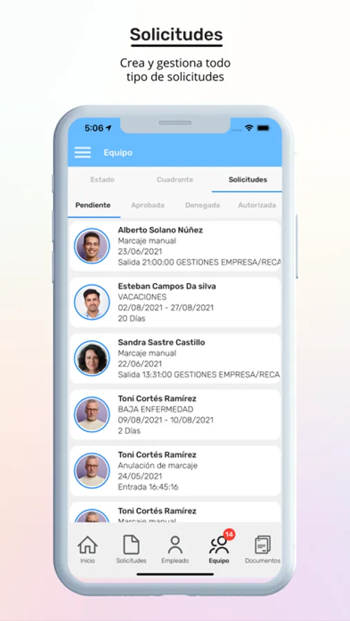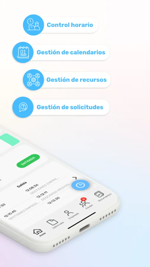 Esta solución ofrece a los empleados y managers la posibilidad de gestionar todo tipo de incidencias y ausencias (desplazamientos, descansos, visitas médicas, etc.) desde la APP, además de incluir la recepción de avisos y notificaciones push, la consulta y solicitud de cambio de horarios de trabajo, creación y gestión de solicitudes, alertas de retrasos, entre otras muchas funcionalidades.