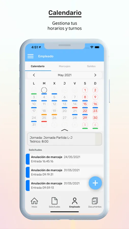 - Visualizar y gestionar calendarios, jornadas y horarios.