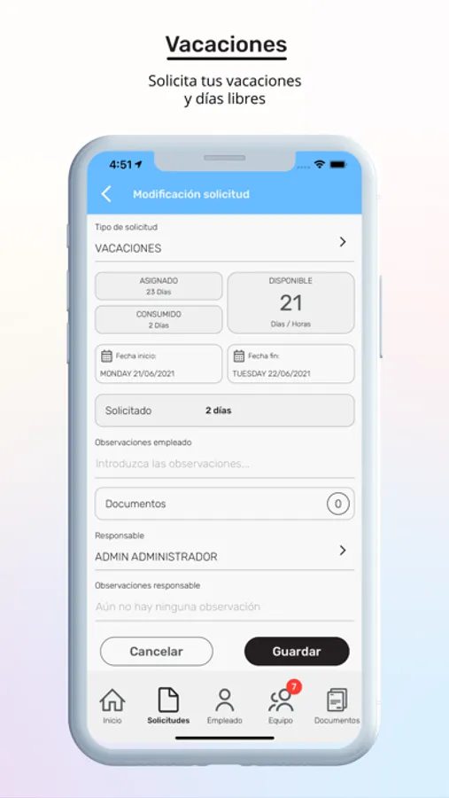 - Creación de solicitudes de días y de horas.