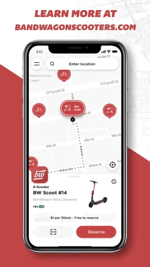 BandWagon gives you access to shared electric scooters in Cheyenne and Colorado. Whether you’re headed to a concert, work, class, or just need a breath of fresh air, BandWagon gets you to where you're going. No traffic, no pollution—just you, the open road, and a sustainable way to travel around the neighborhood. Live free. Get on the BandWagon.