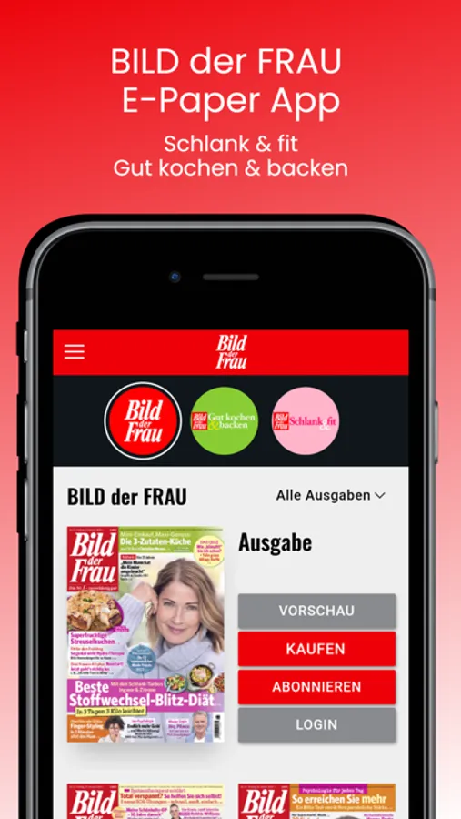 BILD der FRAU steht für eine abwechslungsreiche Mischung rund um all die Themen, die Frauen bewegen! Sie können diese App kostenlos herunterladen und dann die digitalen Ausgaben von BILD der FRAU, BILD der FRAU „Schlank & fit“ und BILD der FRAU „Gut kochen & backen“ entweder abonnieren oder einzelne Ausgaben kaufen.