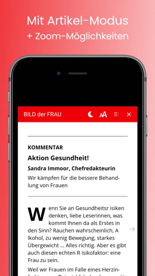 Bei Fragen rund um die App wenden Sie sich bitte an epaper@bildderfrau.de