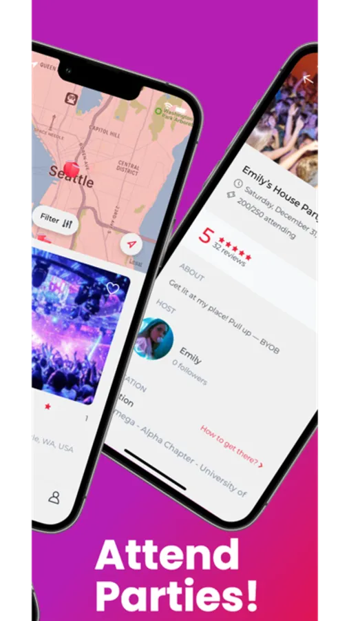 -Find parties on the trending page, party map, or get invited! Choose from an assortment of verified hosts and have a blast at as many parties as you can find!