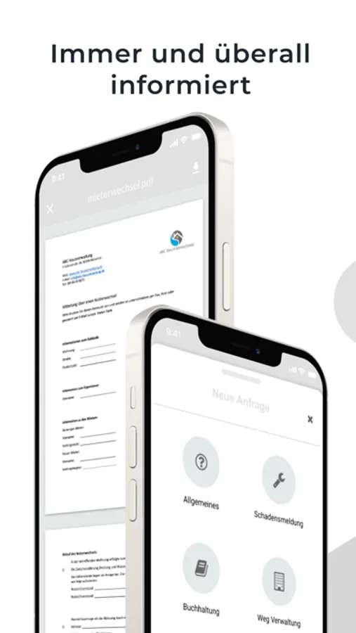 - Abwicklung von (Schadens-)Meldungen, Schlüsselbestellungen etc. direkt via Smartphone inkl. aktueller Bearbeitungsstatus