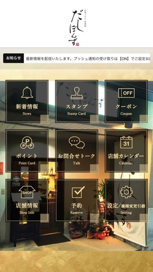 ・【だしぼんず】からの最新情報をプッシュ通知で受け取れます。