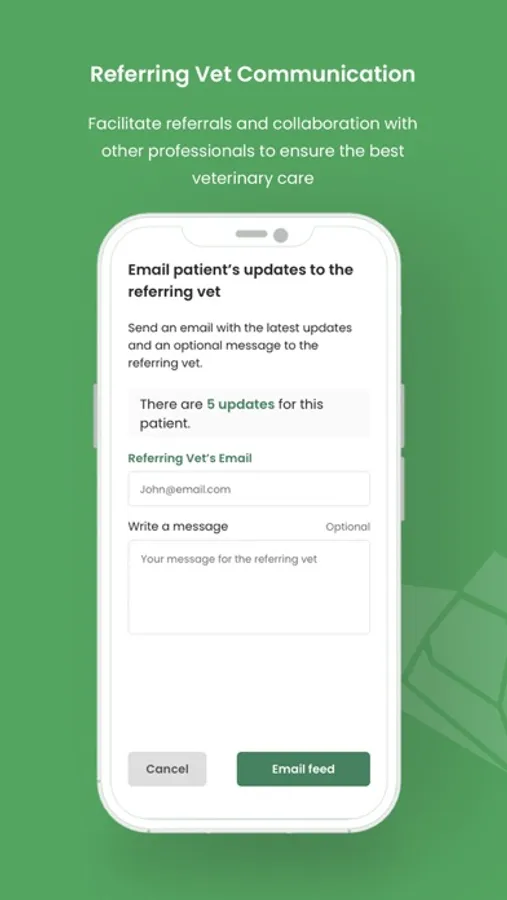 Update referring vets on mutual patients by sharing the patients’ feeds. Customize your messages, and share the latest patient updates with any veterinary provider involved in your patient's care. Gemma helps patients’ well-being even after they've been discharged.