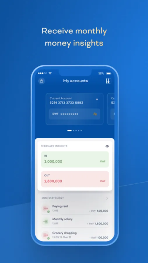 Stay on top of your finances by accessing your accounts instantly anywhere, anytime with Bank of Kigali Mobile Banking.