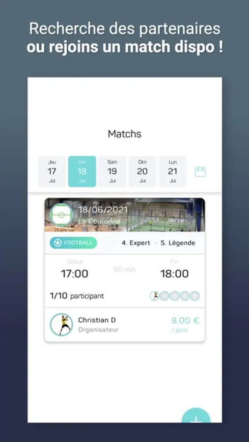 Consulte les matchs proposés par les autres joueurs. Dès que tu as trouvé le match qu'il te faut, inscris-toi !
