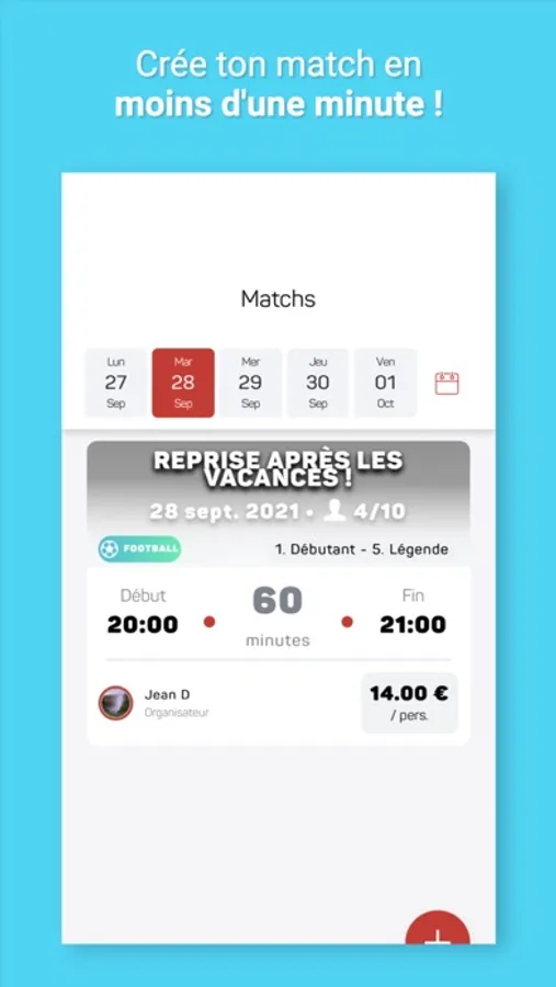 Rien de plus simple pour organiser tes matchs : 2 clics et c'est fait !