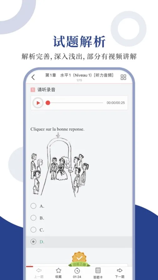 专为法语知识考试精心准备的考试配套题库,每一道试题都有答案解析,为考试提供了充分的复习准备,可随时随地学习练习,支持手机、平板多端同时使用。