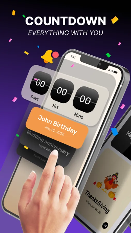 Let's with each other countdown precious moments. With event sharing feature will help you spread the fun when counting down with family members, friends, colleagues and invite them to join in your countdown.