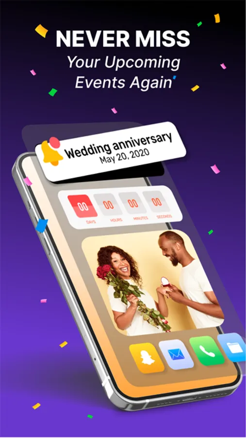 With countdown event reminder smart feature help you configure your countdown event and get notifications more frequently as the event approaches. Events anniversaries and precious moments will never be forgotten again.