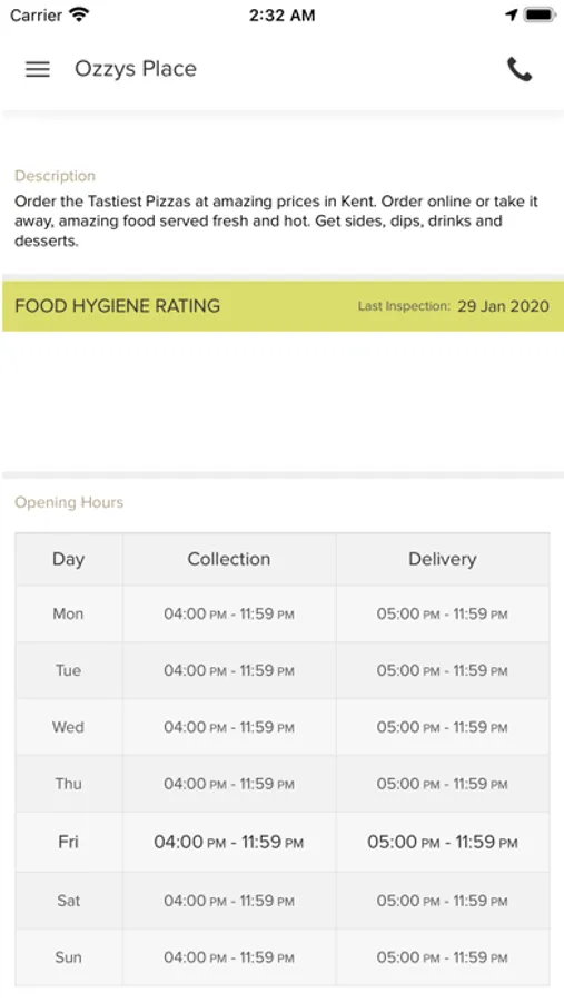 Thank you for visiting Ozzys Place in Edenbridge. We hope you enjoy our online ordering app and your food.