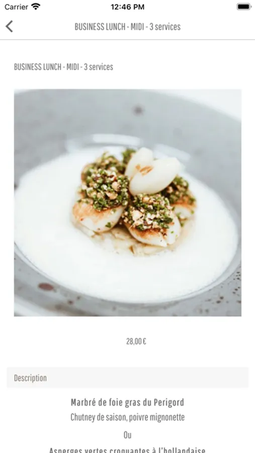 - Les cartes : les menus, les entrées/plats/desserts à la carte, les grands crus, les cocktails