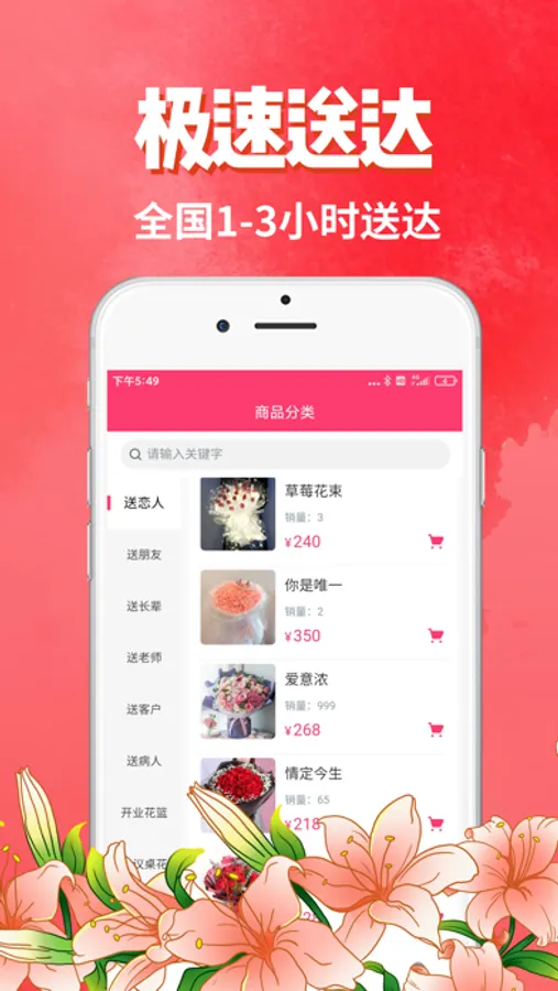 【方便快捷】 下载花来乐APP,找到喜欢的款式,输入收花人地址,然后提交订单; 鲜花订购就是如此简单,无论您在哪里,总是让您的祝福及时送达。