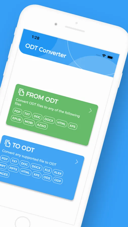 This conversion application allows you to convert any ODT file to other files like PDF, TXT, WORD, DOCX, HTML, XPS, EPUB, MOBI and AZW3, it can also convert other files to ODT.