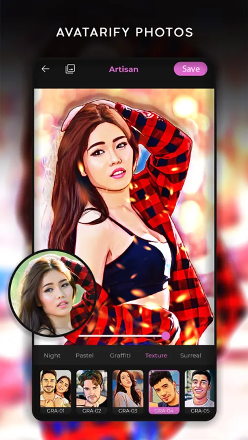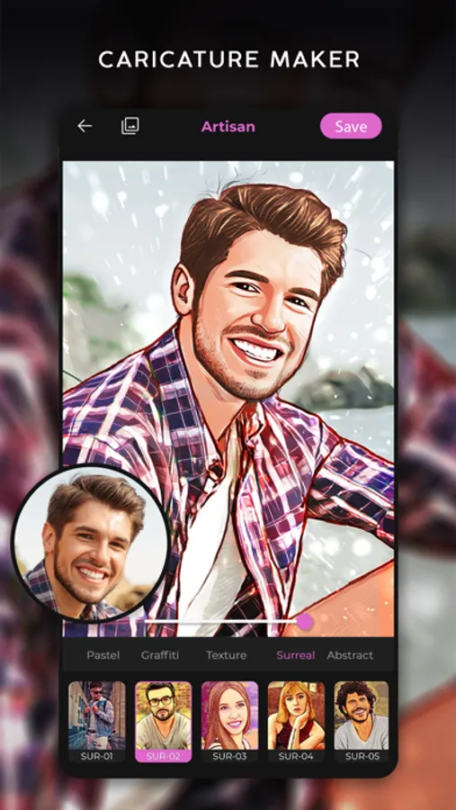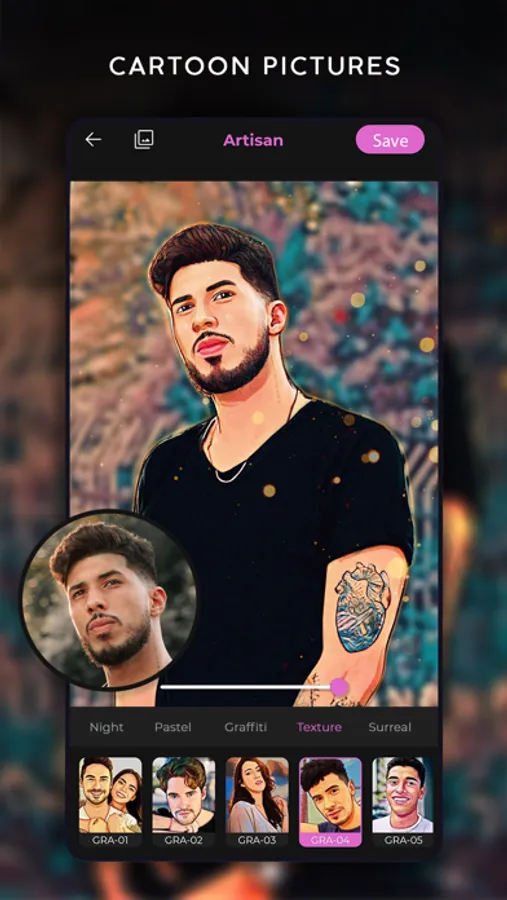 Thanks to amazing features of Artisan you can convert any photo to cartoon in one tap and avatarify pictures using the cartoon face filters. Also you can have a hand drawn black and white pic just in seconds thanks to the caricature sketch effect. Explore cool manga, anime and caricature effects offered by Artisan Cartoon Editor. Toonify and cartoonize selfies easily to join the new trend.