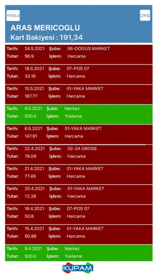 KupamPay, Kupam Bilişim firması tarafından üretilen kapalı devre sanal yemek kartı sistemidir. Bu yazılımı kullanan kullanıcılara KupamPay yazılımı üzerinden sanal yemek bedeli yüklenir ve sanal kart sahipleri bu sanal kartları ile o işletmedeki yemekhane veya kantin gibi tüketim noktalarında bu sanal yemek tutarlarını kullanabilirler. KupamRapor uygulaması, sanal kart sahibinin kartı ile gerçekleştirdiği işlemleri ve kartındaki mevcut sanal bakiyeyi takip etmelerini sağlayan bir uygulamadır.