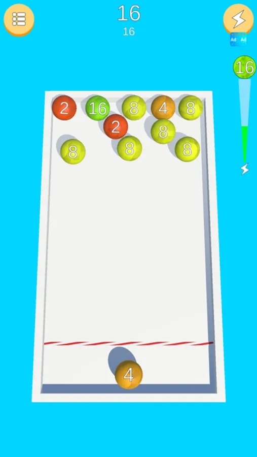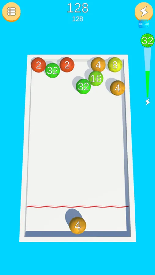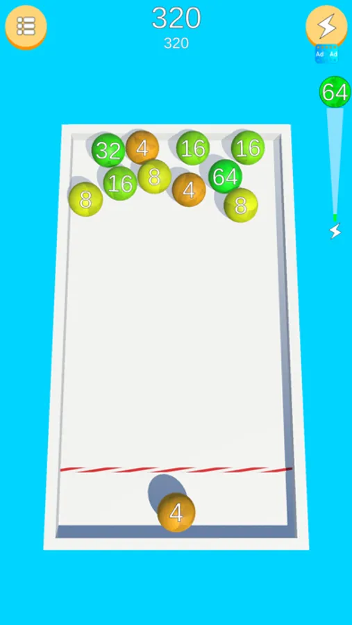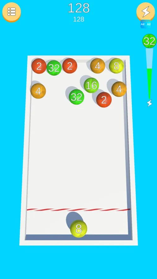 An excellent puzzle with moving balls. Your task is to combine balls with the same numbers. Get the largest number. 1024, 2048, 4096 ...