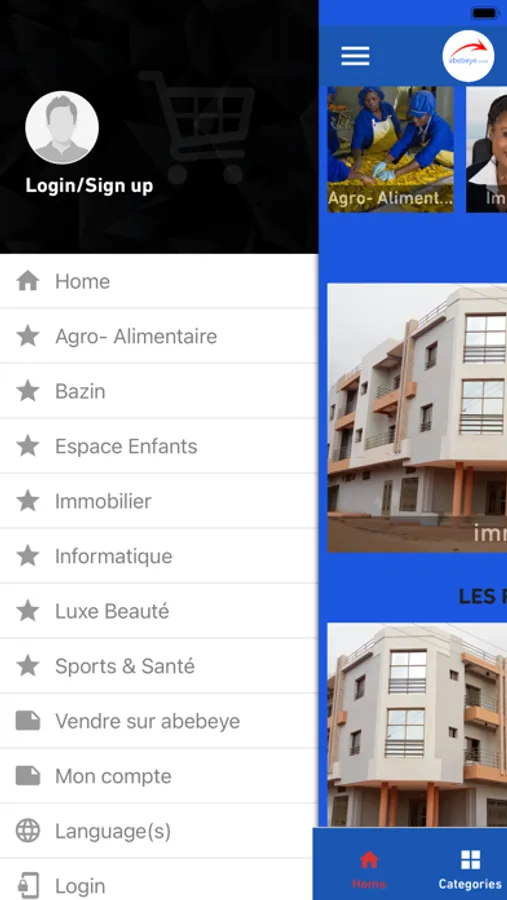 Abebeye, plateforme de vente, de location des appartements, des maisons, des terrains de construction, des vêtements telque : les bazins riches, getzer, veba, veba couleur, a prix discount !.