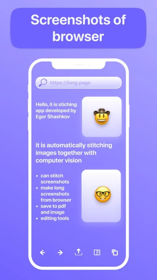 If you need to stitch several screenshots of chats or a page from the browser, then this application will help you!