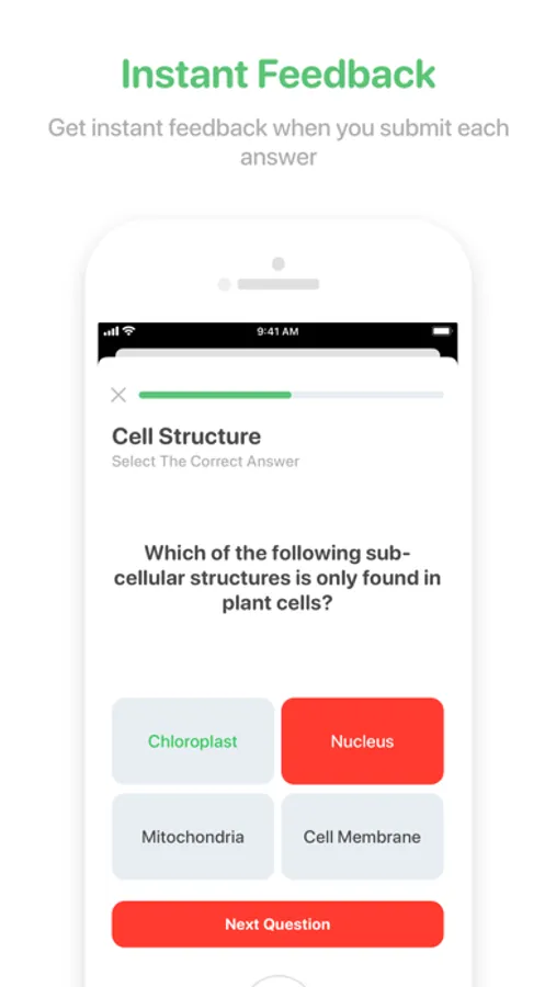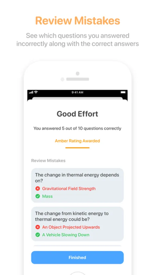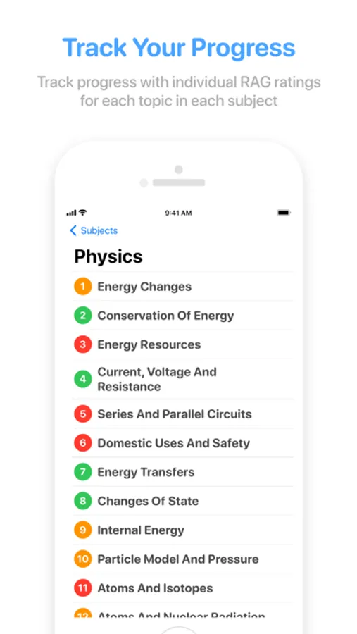 Each time you answer a question, you get instant feedback whether you got the answer correct with a summary at the end of each topic. Each topic gets given a RAG rating, either red, amber or green, based on how well you did when answering the questions. This gives a visual representation of your progress for each topic with overall percentages for each subject.