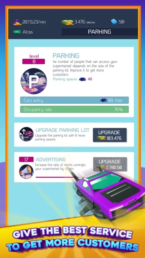 Start running a small shop and work hard to make your business grow. Research new features expand your business and reach more clients. Build a bakery, fashion department, electronics store or a restaurant. Sell the best products to attract clients. Hire sellers and make them increase your sales and profits. Take care of your customers. Offer them a wide range of options to stick around in your supermarket. Build a parking lot where they can safely park their cars and go shopping. The more customers you can attract to your supermarket to buy, the more cash you can get.