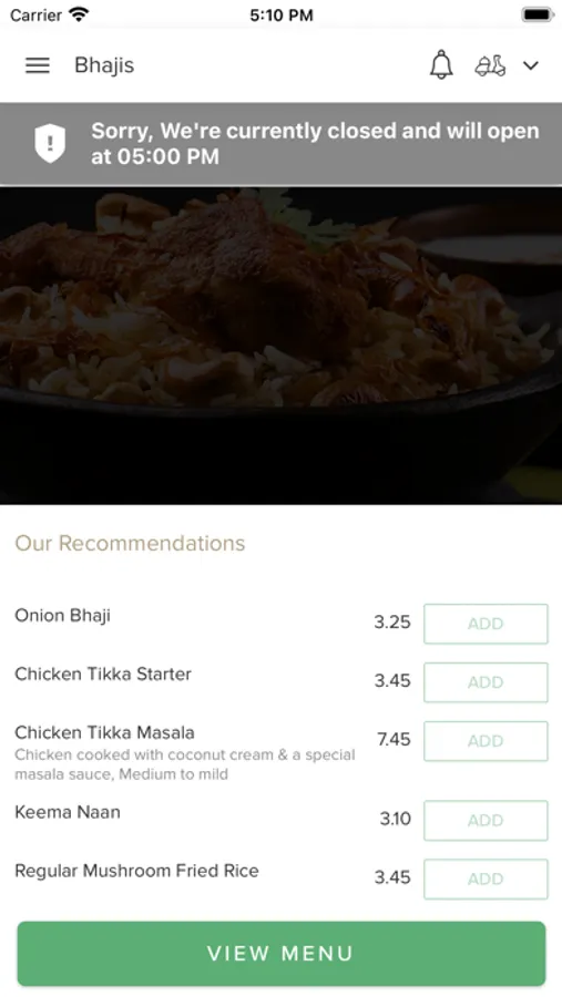 Order food online from one of the finest takeaways in town. Here at Bhajis in Bristol Road, and are proud to serve the surrounding area. We serve a variety of food such as biriyani, balti, tandoori, rice and more. You can find our whole menu on our app, filled with mouth-watering dishes and catering for all kinds of different tastes!
