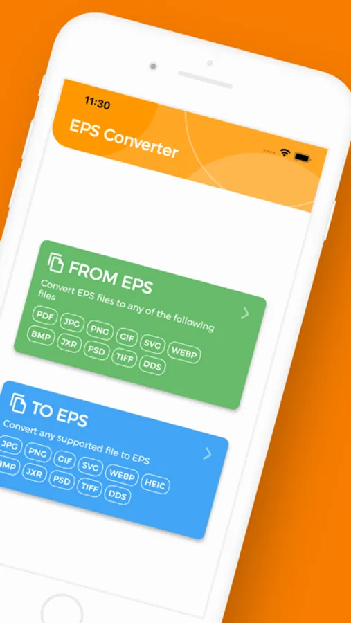 This conversion application allows you to convert any EPS image file to other files like PDF, JPG, PNG, GIF, SVG, WEBP, BMP, JXR, PSD, TIFF and DDS, it can also convert other files to EPS.