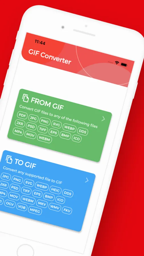 This conversion application allows you to convert any GIF image file to other files like PDF, JPG, PNG, SVG, WEBP, DDS, JXR, PSD, TIFF, EPS, BMP, ICO, MP4, MOV and WEBM, you can also convert others files to GIF.