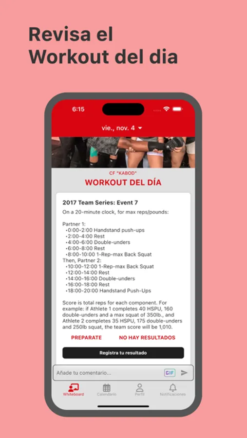 Compara resultados con otros atletas, preparate antes del workout con los videos y registros de resultados anteriores.