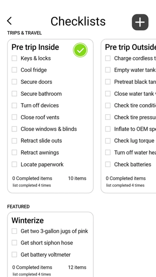 Manage everything from the App, then use the App’s complimentary Checklist Builder to plan and track every step of your next adventure.