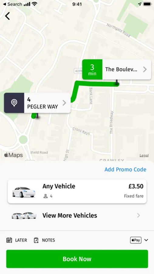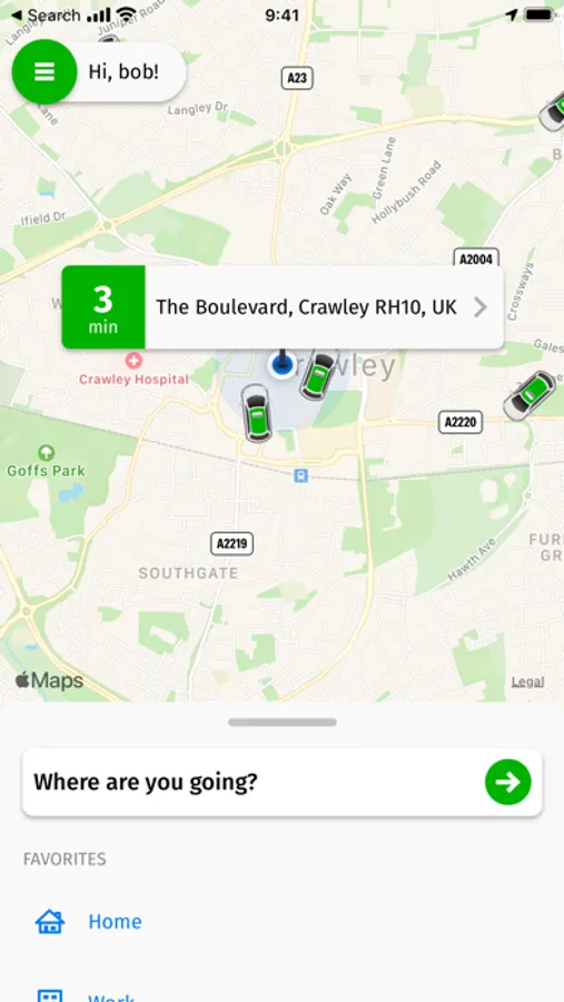 You can place the booking directly on our map, and see how many available cars there are nearby.