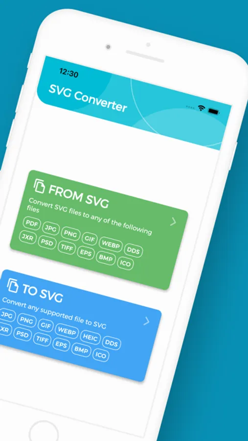 This conversion application allows you to convert any SVG image file to other files like PDF, JPG, PNG, GIF, WEBP, DDS, JXR, PSD, TIFF, EPS, BMP and ICO, it can also convert other files to SVG.
