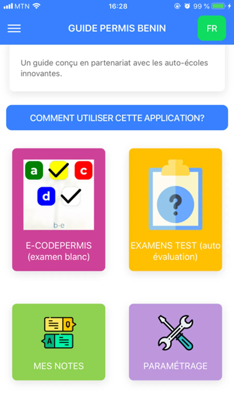 Guide Permis Benin, Ecode avec plus de 40 sujets en français et plus de 30 sujets en langue local