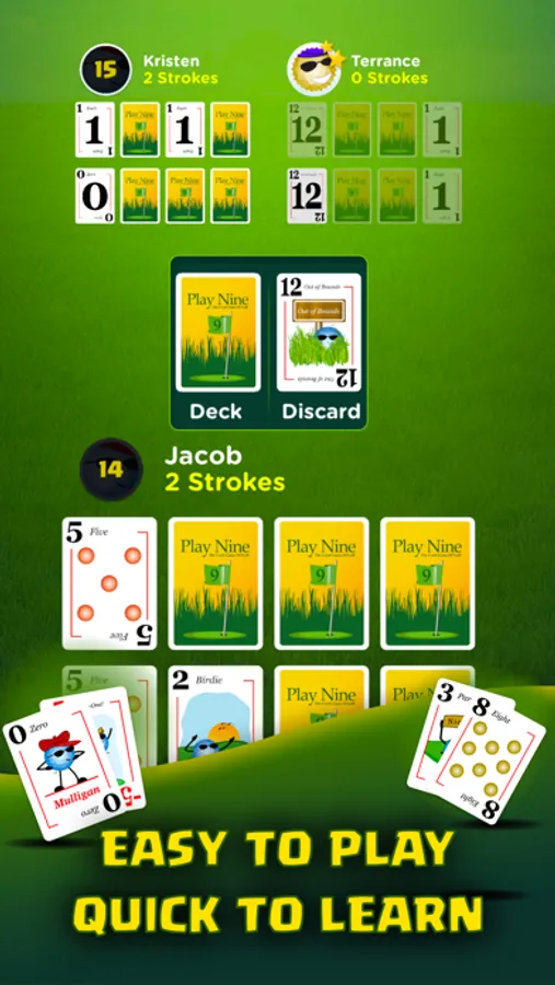 Play Nine is inspired by the classic card game of golf but reimagined with new exciting gameplay and funny golf characters. This quirky, simple game will keep you laughing for hours. In this mobile edition of our famous golf game, you can hone your skills by challenging the AI in our offline game or compete against your friends and family in multiplayer online modes.