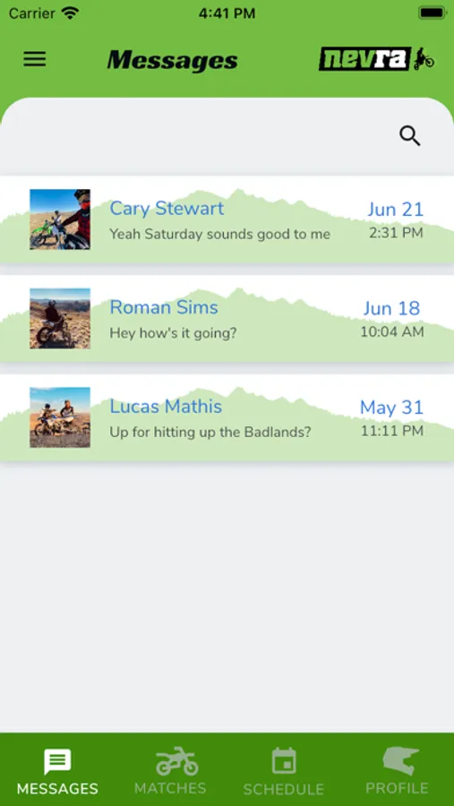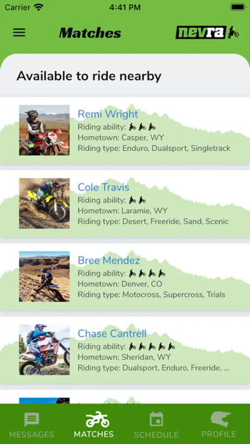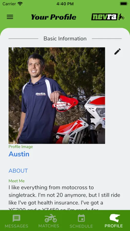 Whatever your reasoning, NEVRA is the answer! NEVRA seeks to grow the off-road motorcycle industry by connecting like-minded users with a common interest based on schedule availability, location, skill level, and more. The name says it all; NEVRA comes from "Never Ride Alone." Safety is our first concern and it is our goal to make sure that you've always got someone with you when you're at the track or on the trail. We know you want to ride and we know it's your passion.