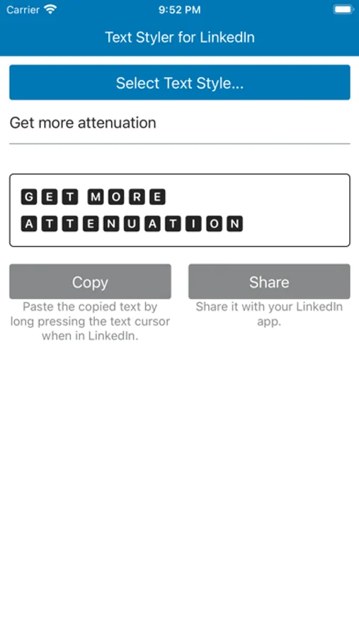 Customize the text of your posts by create the text using the app and share it to LinkedIn. This app supports all major social networking apps and websites.