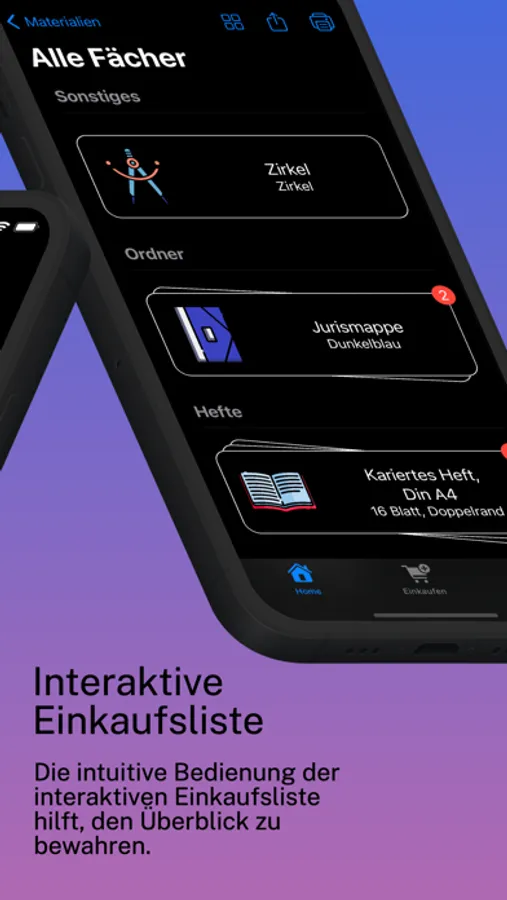 Mithilfe von Materiallisten die von Lehrkräften erstellt werden, können Schüler:innen alle Materialien direkt mit dem Anfang des neuen Schuljahres in dieser App abrufen.