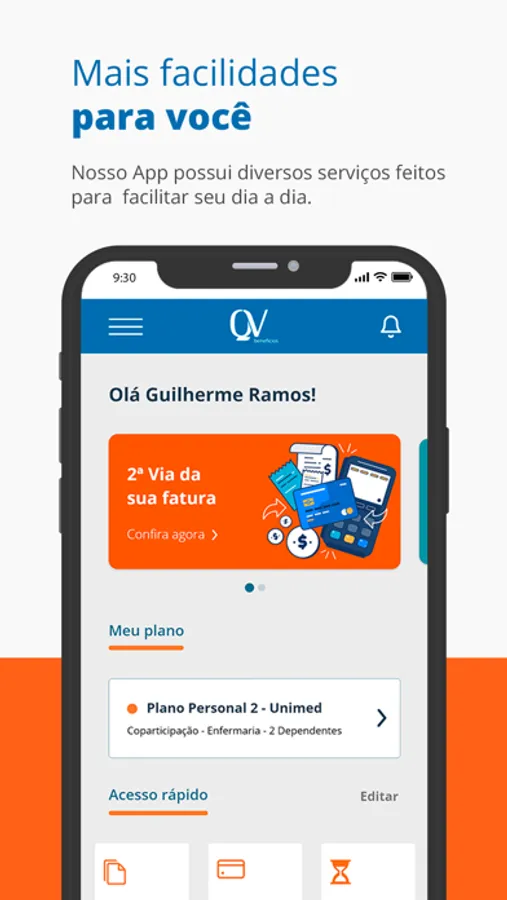 Beneficiário QV Benefícios, encontre em nosso APP todos os serviços que oferecemos para facilitar seu dia a dia.