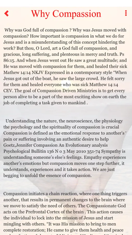 Why was God full of compassion ? Why was Jesus moved with compassion? How important is compassion in what we do for Jesus and is a misunderstanding of this concept hindering the work? But thou, O Lord, art a God full of compassion, and gracious, long suffering, and plenteous in mercy and truth. Ps 86:15. And when Jesus went out He saw a great multitude; and He was moved with compassion for them, and healed their sick Mathew 14:14 NKJV Expressed in a contemporary style “When Jesus got out of the boat, he saw the large crowd. He felt sorry for them and healed everyone who was sick Matthew 14:14 CEV. The goal of Compassion Driven Ministries is to get every person alive to be a part of the most exciting show on earth the job of completing a task given to mankind .