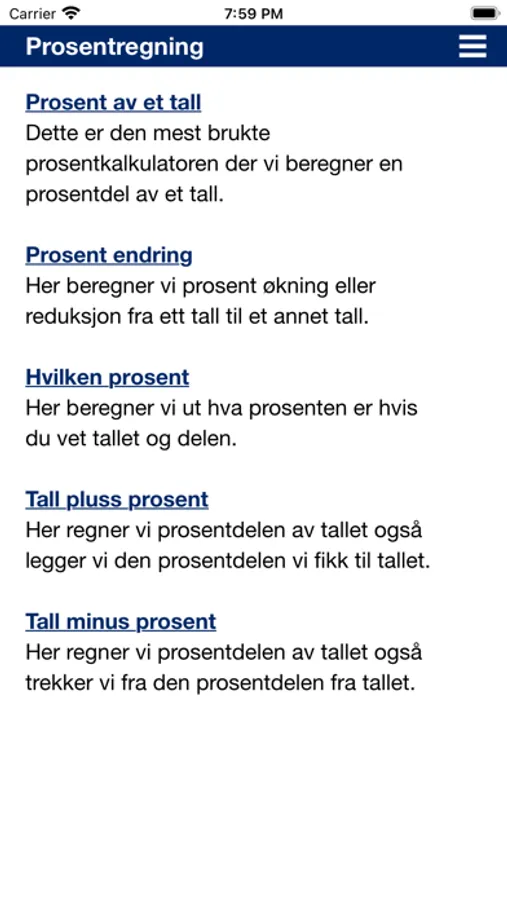Denne appen inneholder de fem vanligste prosentkalkulatorene som kan gjøre hverdagen din litt enklere.