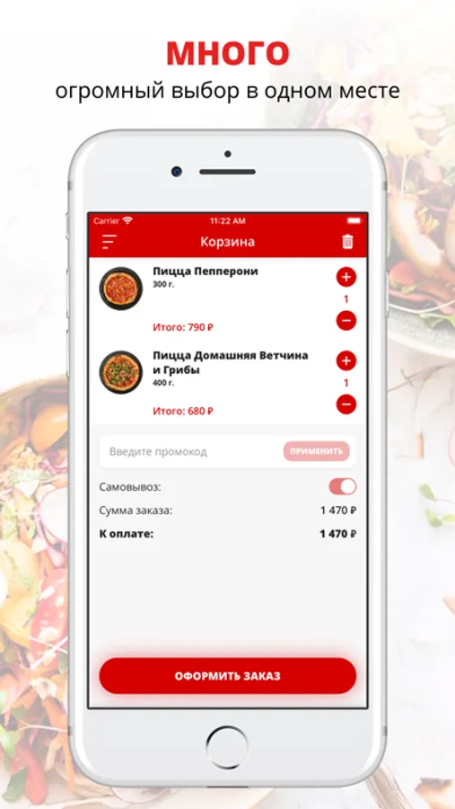 Наше приложение - это удобный и быстрый способ заказа пиццы!