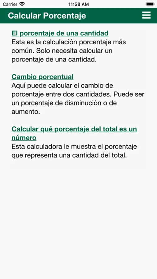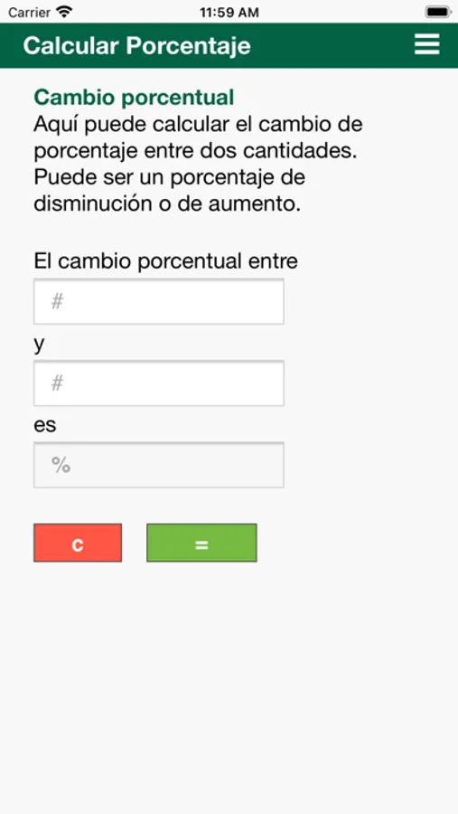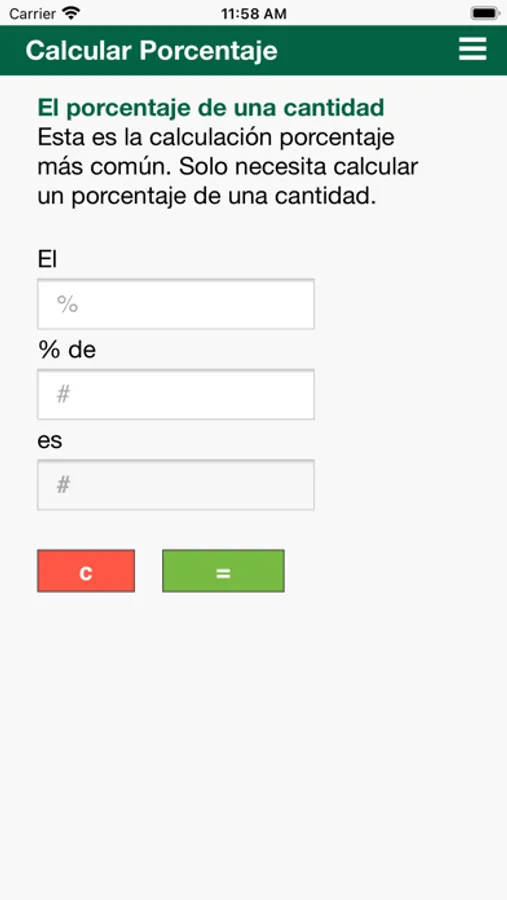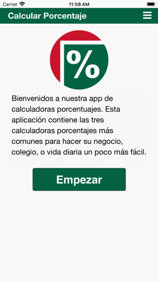 La IOS Calcular Porcentaje app fue creado en respuesta a las visitantes del sitio popular https://porcentaje.org. La meta fue hacerse el app más intuitivo, sin desorden, rápido de operar, y fácil de usar.