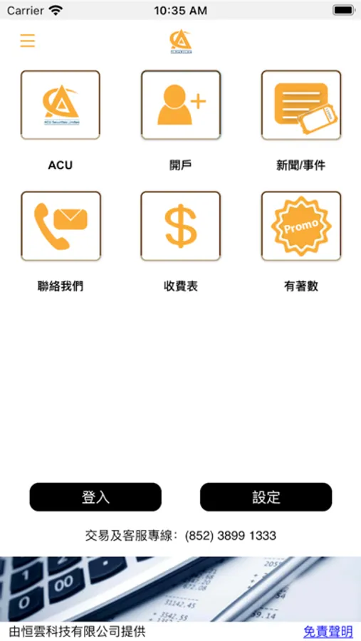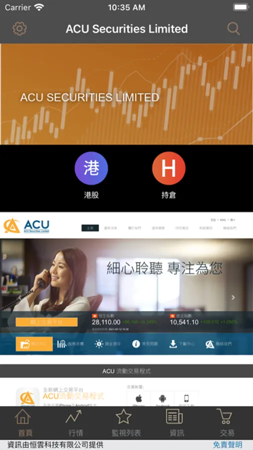 ACU Securities Limited (“ACU”) has been developing diversified securities trading platforms to provide all-rounded investment services. ACU is now offering a new mobile securities trading system for mobile devices. This new application operates quickly, smoothly and stably, aiding you to exploit every investment opportunity at anywhere.