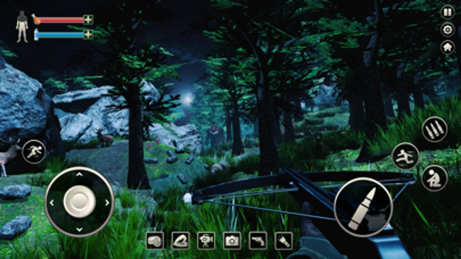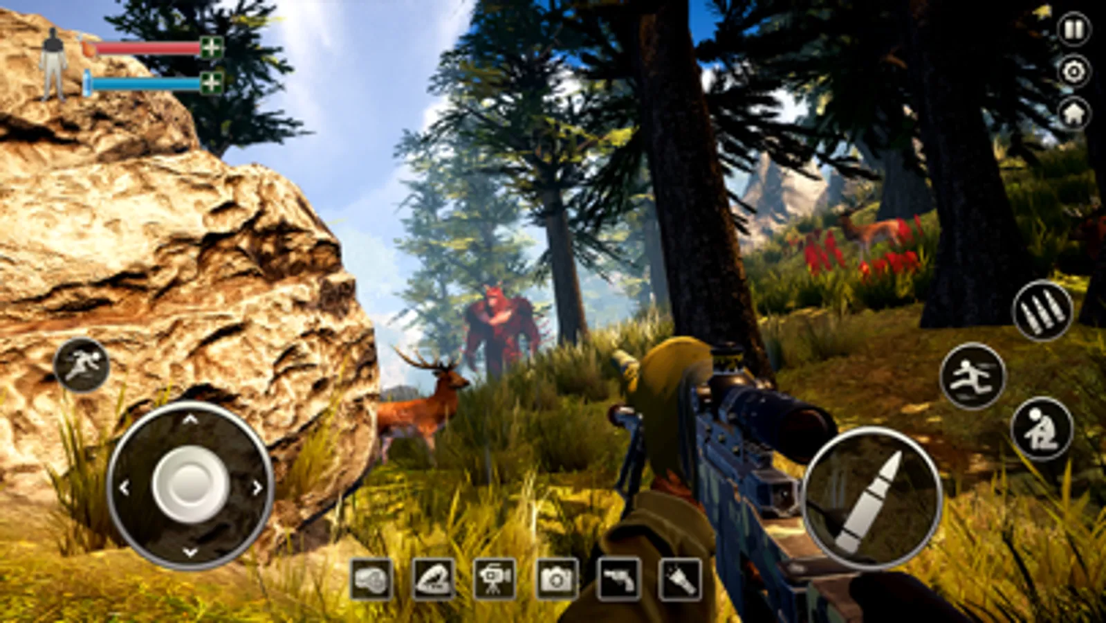 Bigfoot is a game for hunting for life. In Bigfoot, you will take on the role of a brave hunter on the quest for a mysterious mutant beast hiding in a vast dark forest. On the other hand, you've already heard a couple of stories about this massive dark forest where so many people have gone missing and then been discovered dead. In addition, A large number of visitors have also disappeared from this jungle. Police, on the other hand, suspect that people might have died as a result of a crash. However, you and your team are aware of the facts about the bigfoot monster. So you make the decision to go after the beast. Many people who went in search of yeti the bigfoot simply vanished. Moreover, You planned for this journey and you knew it could be risky. You have a hunting rifle, a flashlight, and anything else you might need. In this Bigfoot yeti game, go on a woodland quest and battle evil creatures and dinosaurs with the aid of a rifle, pistol, classic weapons, and modern guns. In this popular hunting game, you must locate and destroy the beast. The mission is straightforward: locate and pursue the hideous Bigfoot beast. If you don't wait long enough, the beast will tear you apart! So be vigilant, behave wisely, and approach each scenario with caution. As you are aware, this creature has killed a large number of people, so what you need to do now is be prepared to face any circumstance. This creature is astute and already recognizes the flaws.