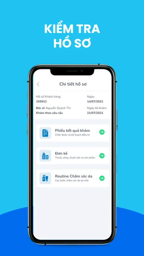 - Hồ sơ thăm khám bao gồm: Chẩn đoán, thông tin toa kê và hình ảnh tình trạng da luôn được cập nhật đầy đủ sau mỗi lần khám.