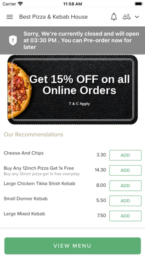 Here at Best Pizza & Kebab House we are constantly striving to improve our service and quality in order to give our customers the very best experience. As a result, we are finally proud to unveil and introduce our latest improvement, our new online ordering app! You can now relax at home and order your favourite, freshly prepared meals from Best Pizza & Kebab House, online. You can even pay online!